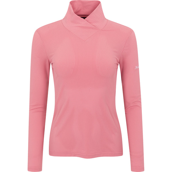 Crossover turtle neck with snap closure for sun coverage and a sophisticated edge